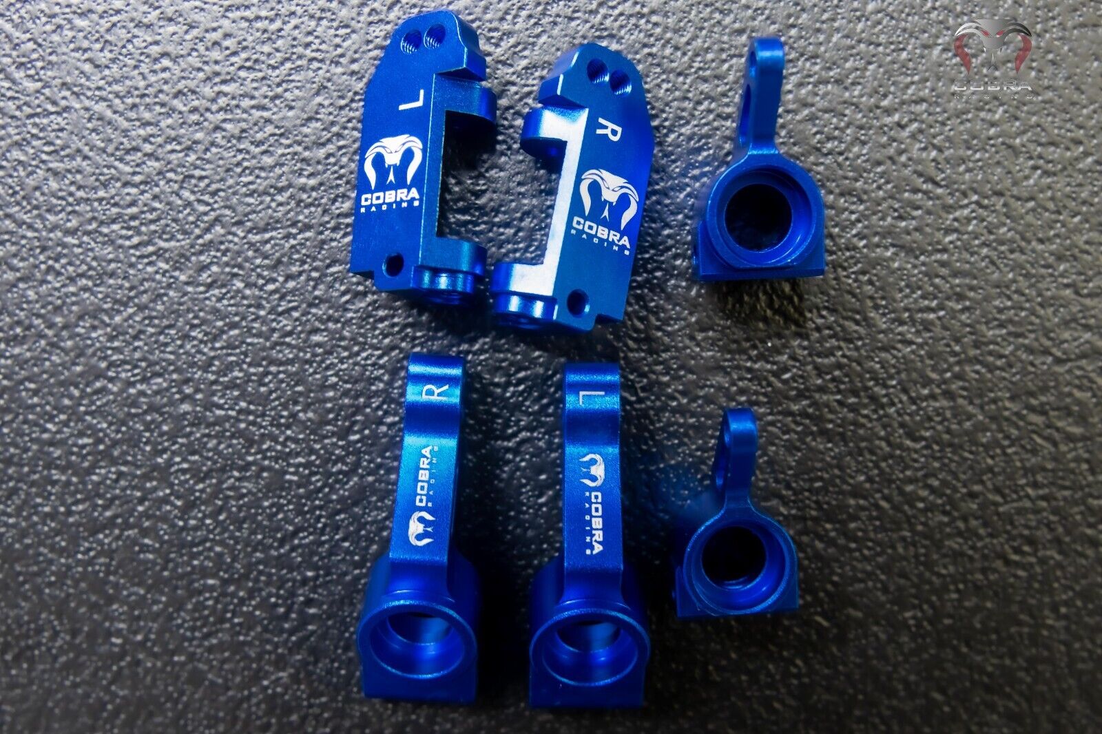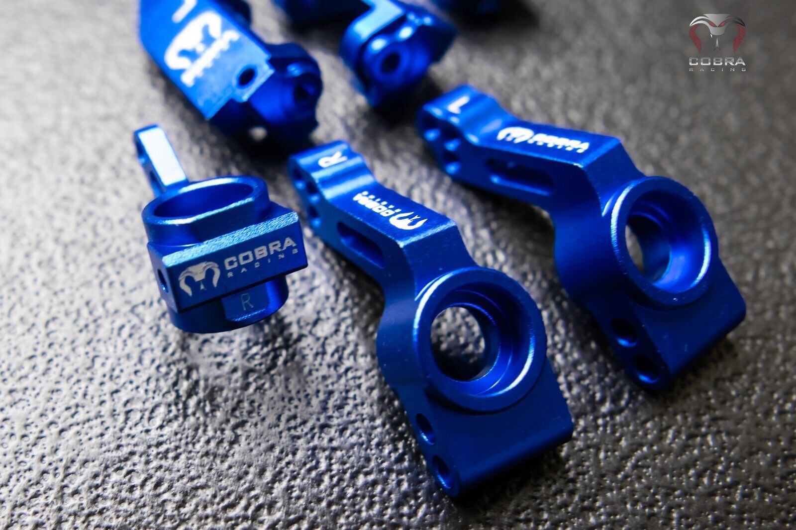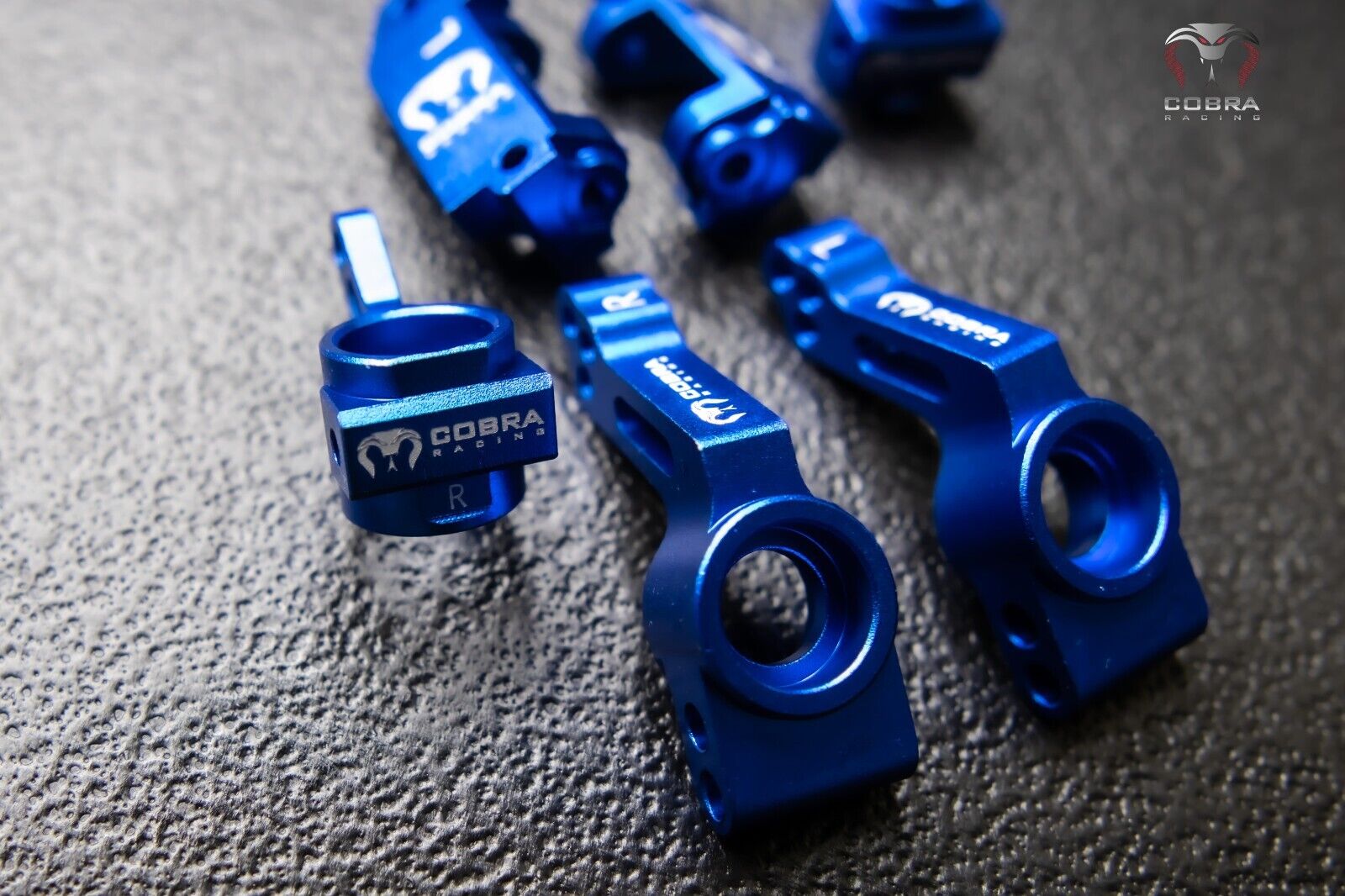 Crafted from premium-grade aluminum, these Aluminum Knuckle Set by Cobra Racing offer exceptional durability while remaining lightweight. This ensures your RC vehicle maintains its agility without compromising on strength. The striking blue anodized finish not only adds a pop of color to your setup but also provides additional protection against wear and tear, ensuring your components look and perform like new for longer.