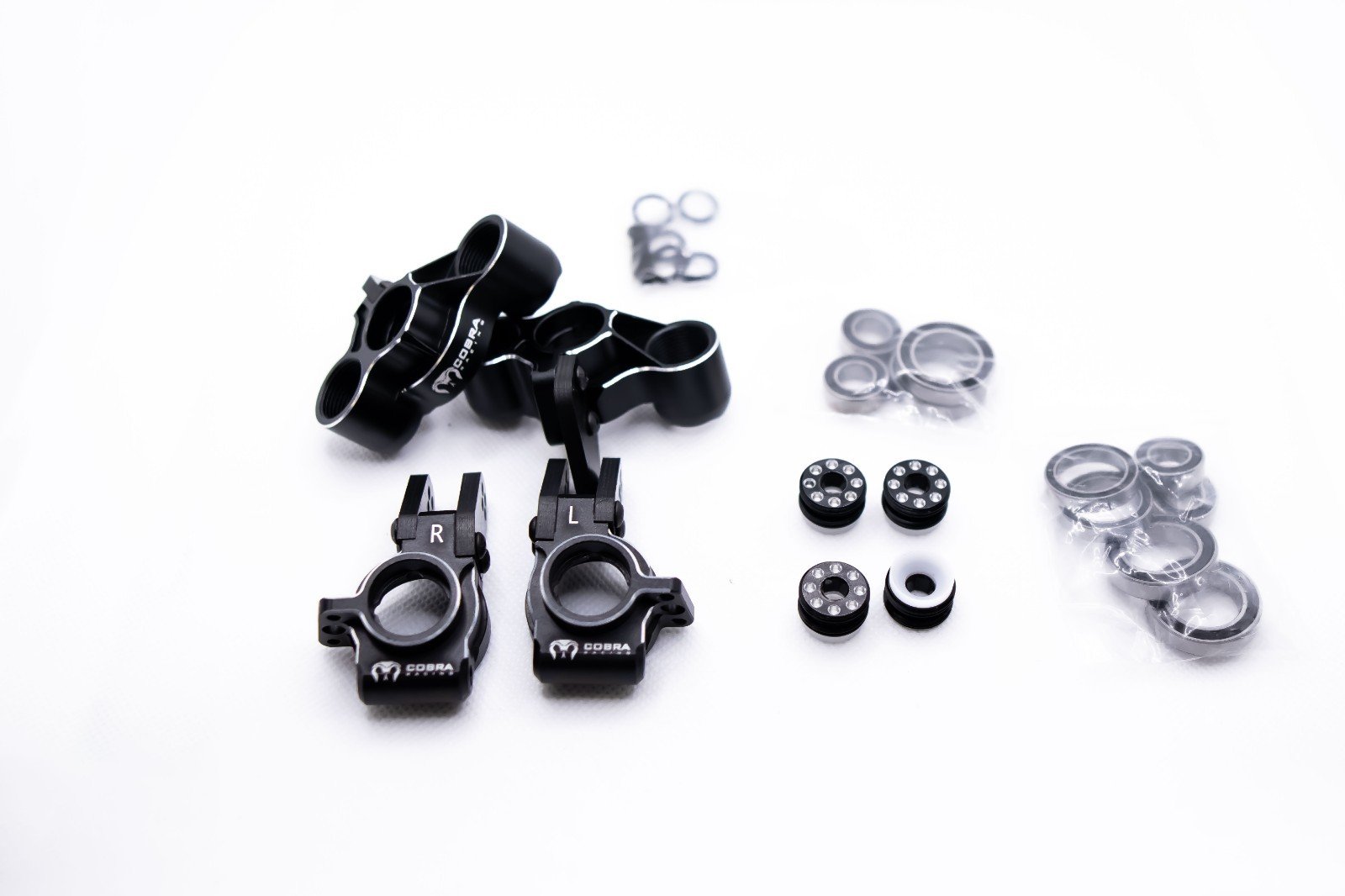 Bring your 6S rig to the next level with Cobra Racing’s Complete 7075-T6 Aluminum Knuckle & Rear Hub Carrier Set — a masterclass in aesthetics and engineering for your Arrma 6S vehicle.