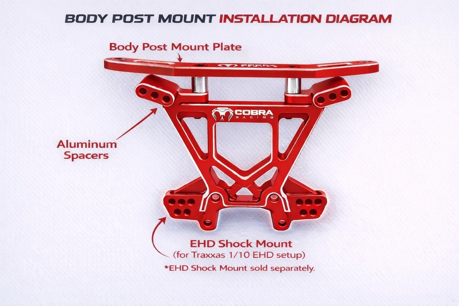 Cobra Racing EHD Body Post Mount Plate – Traxxas 4x4 | 7075-T6 Aluminum - Installation Diagram