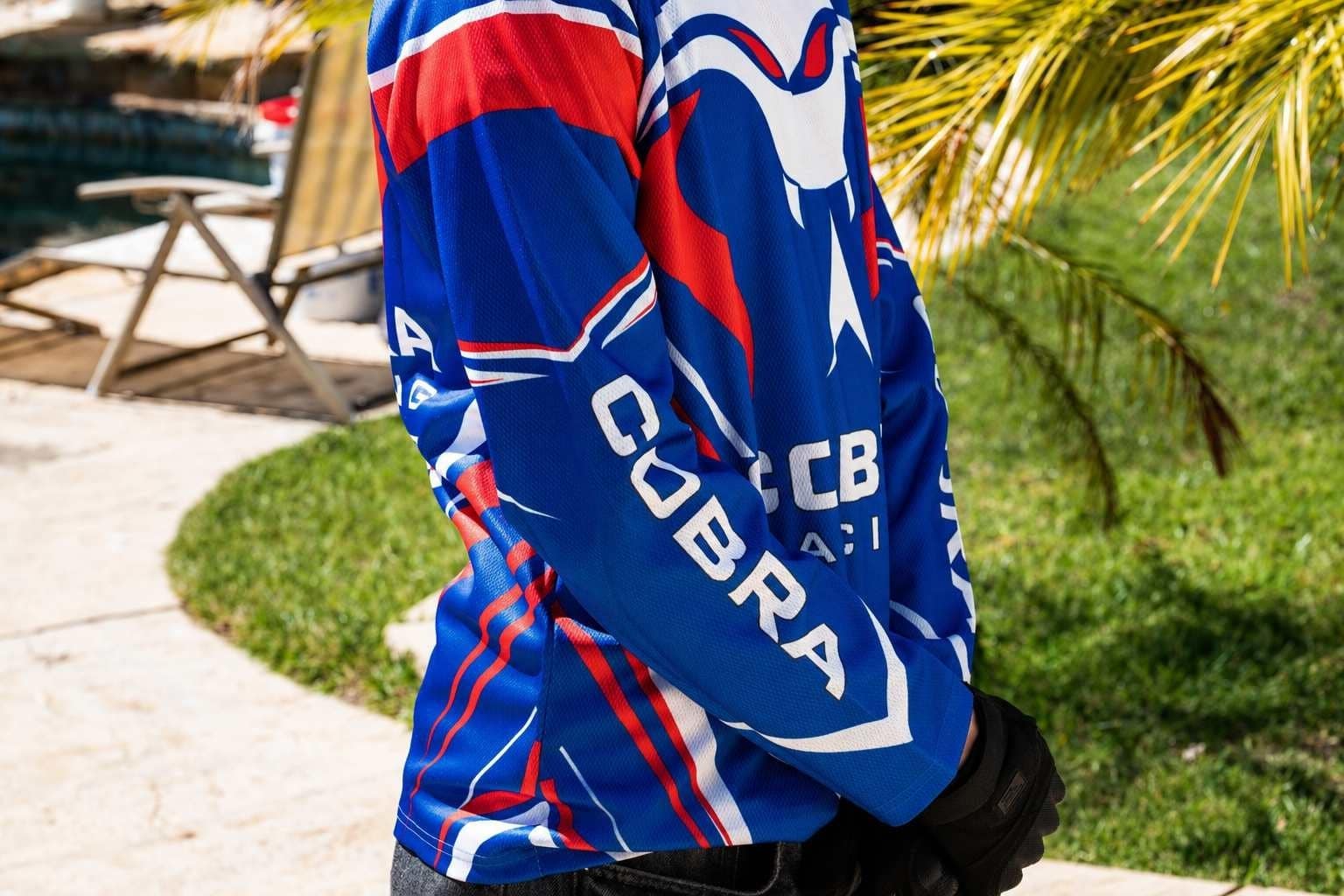 Bring the Cobra Racing look from the bench to the track, trail, backyard bash spot, or motocross ride. This lightweight Cobra Racing jersey is built with a breathable athletic mesh feel, bold sublimated graphics, and an aggressive blue, red, and white design that stands out anywhere.