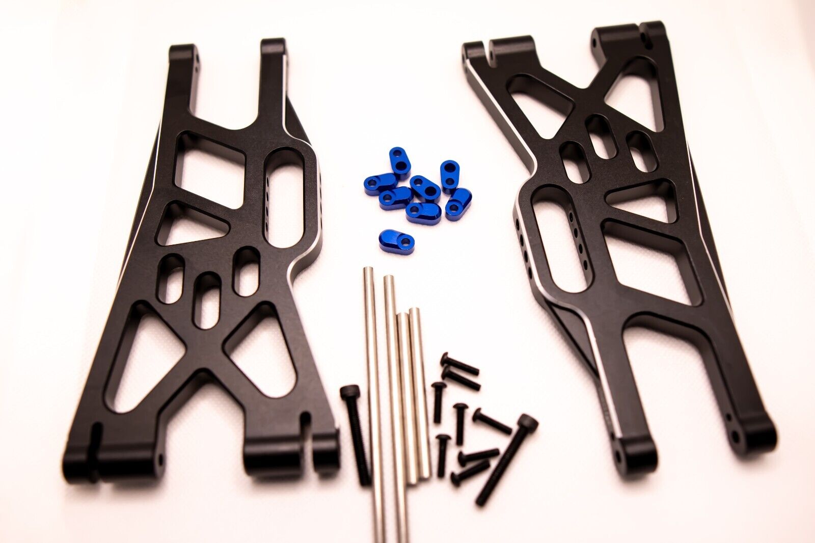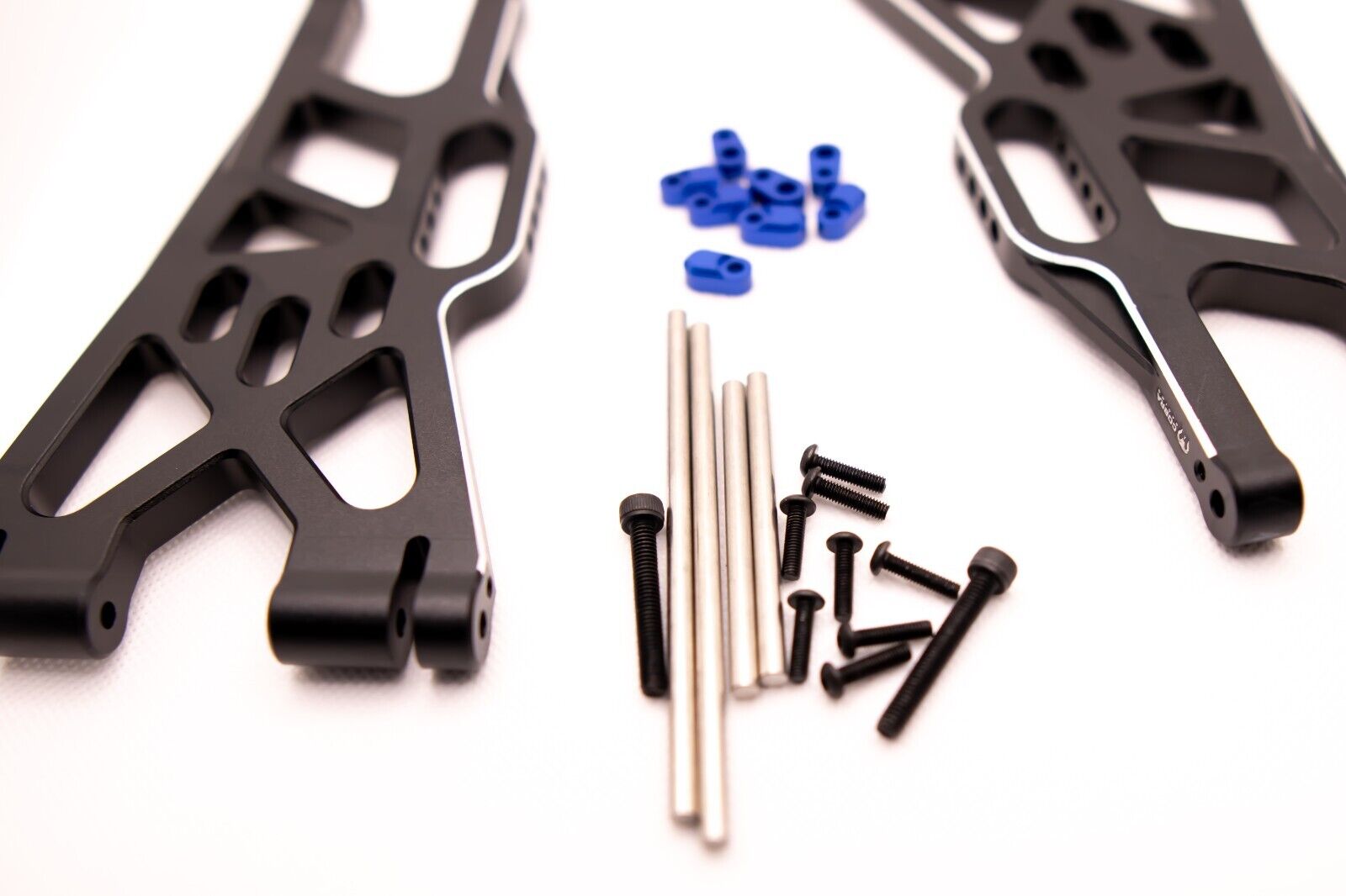 • Includes: Two (2) Lower A-Arms (front or rear) + other hardware (Pins, Blue Aluminum Pin retainers (8), screws, etc…)
