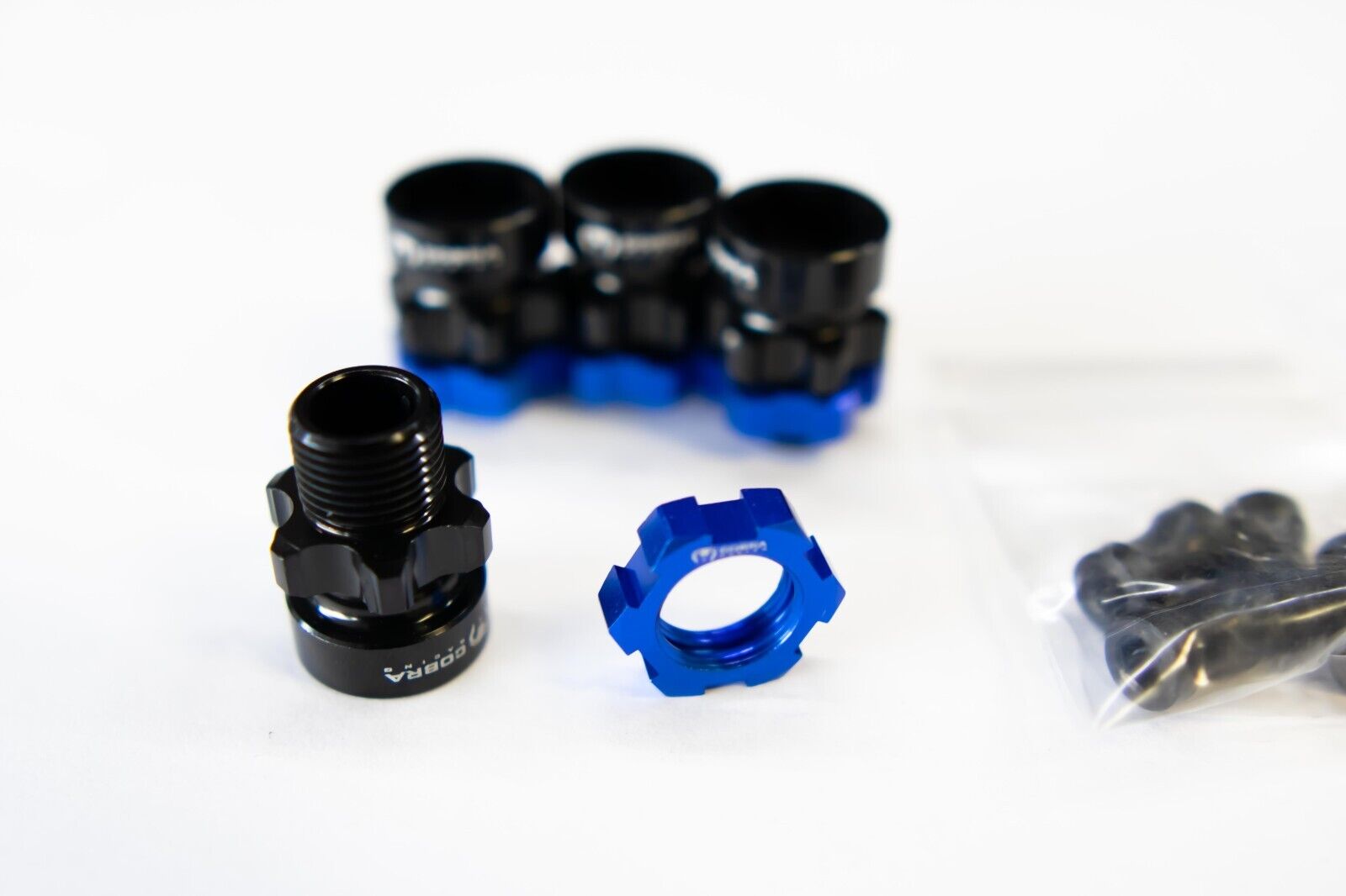 • 4 x 12mm-17mm Hex Hub Extendersย (Black with Navy Blue Nut)