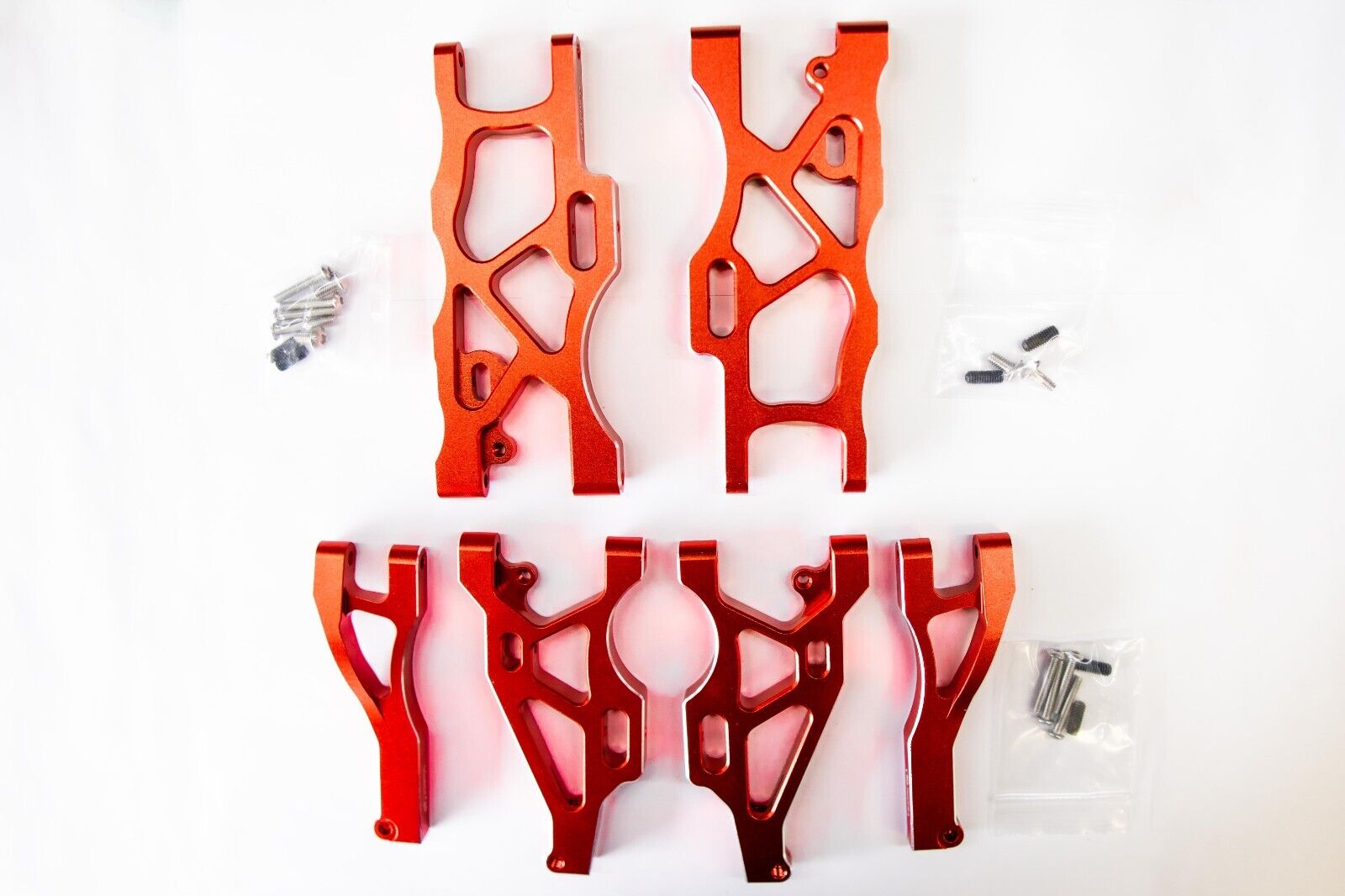 - 2 x Upper Front A-Arms (Left and Right) – Ruby Red with Chrome Outline