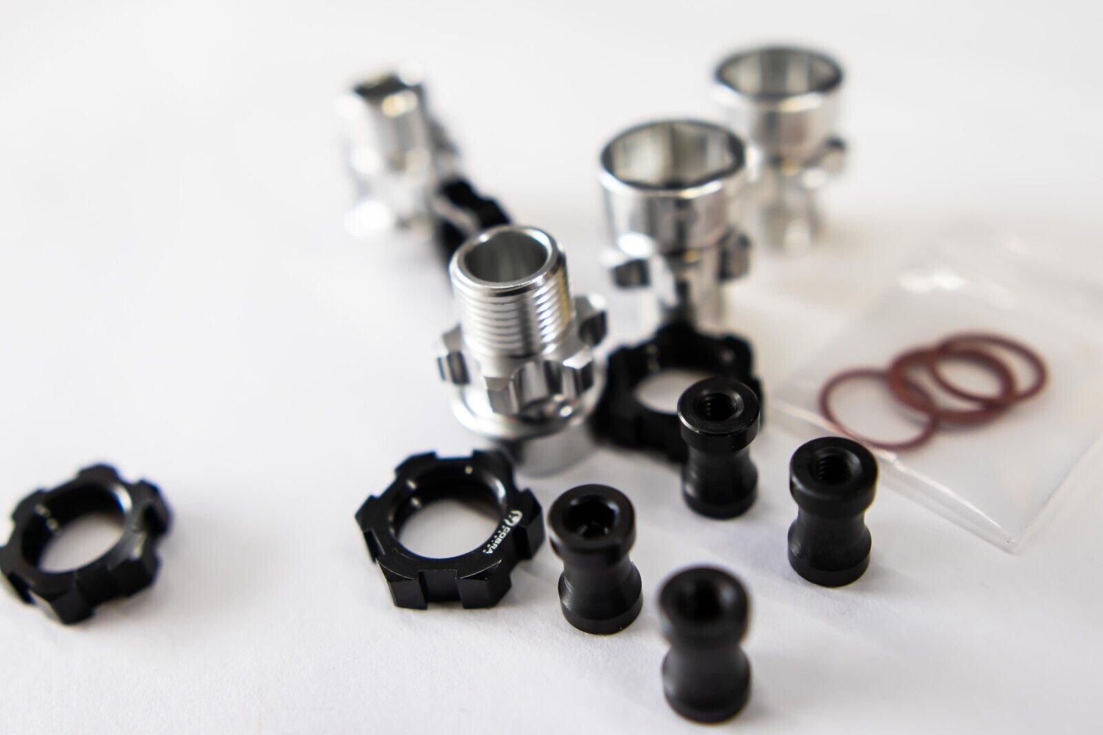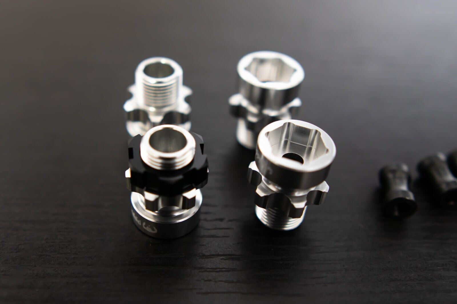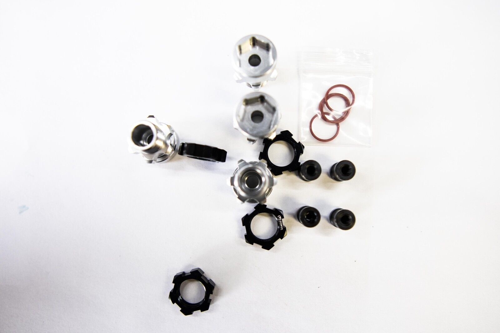 • 4 x 12mm-17mm Hex Hub Extenders (Mirror-Chrome with a black nut)