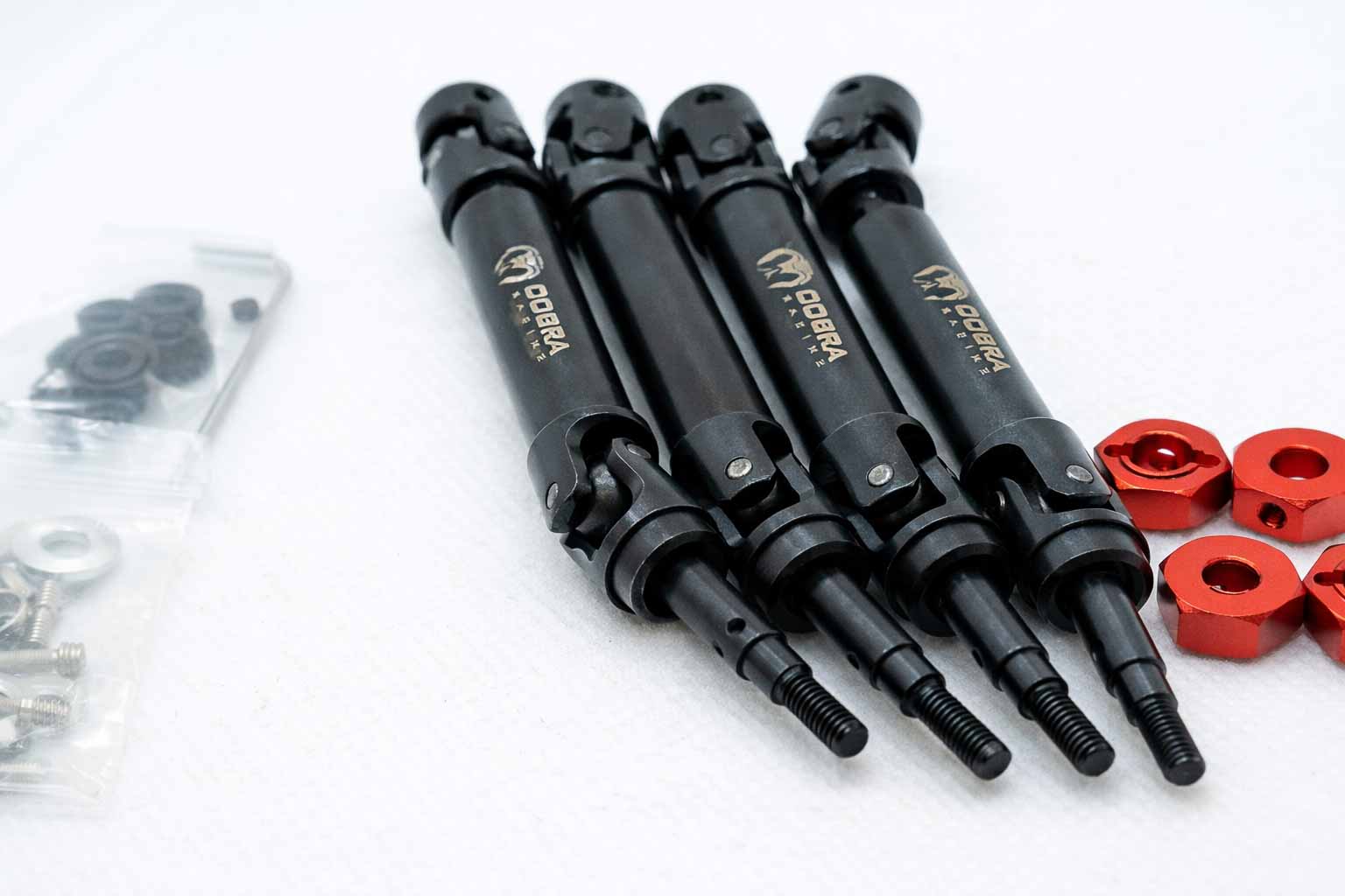 Cobra Racing’s Extreme Heavy Duty (EHD) Steel CVD Driveshafts are built for high-load 1/10 4×4 applications where standard driveline components reach their limits. Designed around a larger 6mm bearing platform, this system increases strength, bearing support, and overall drivetrain durability compared to traditional 5mm CVD setups.