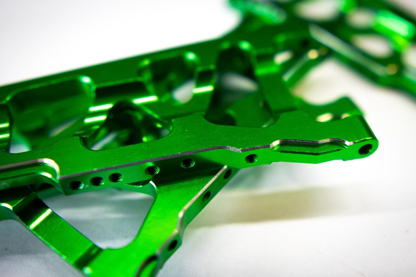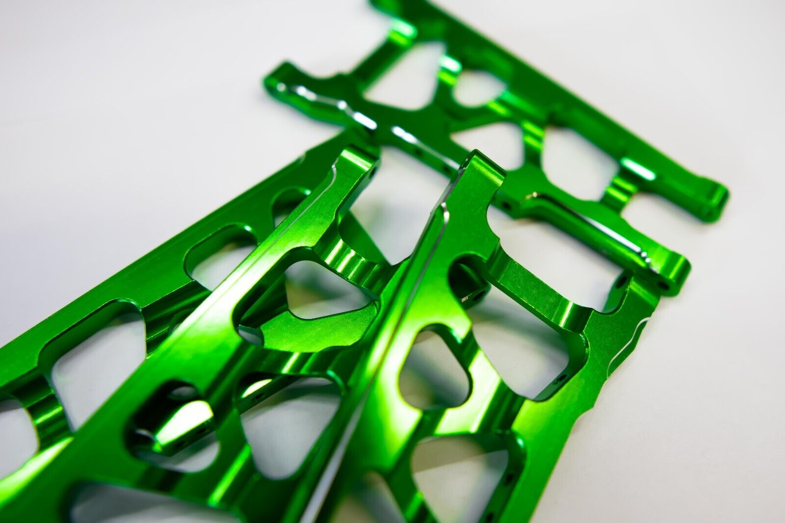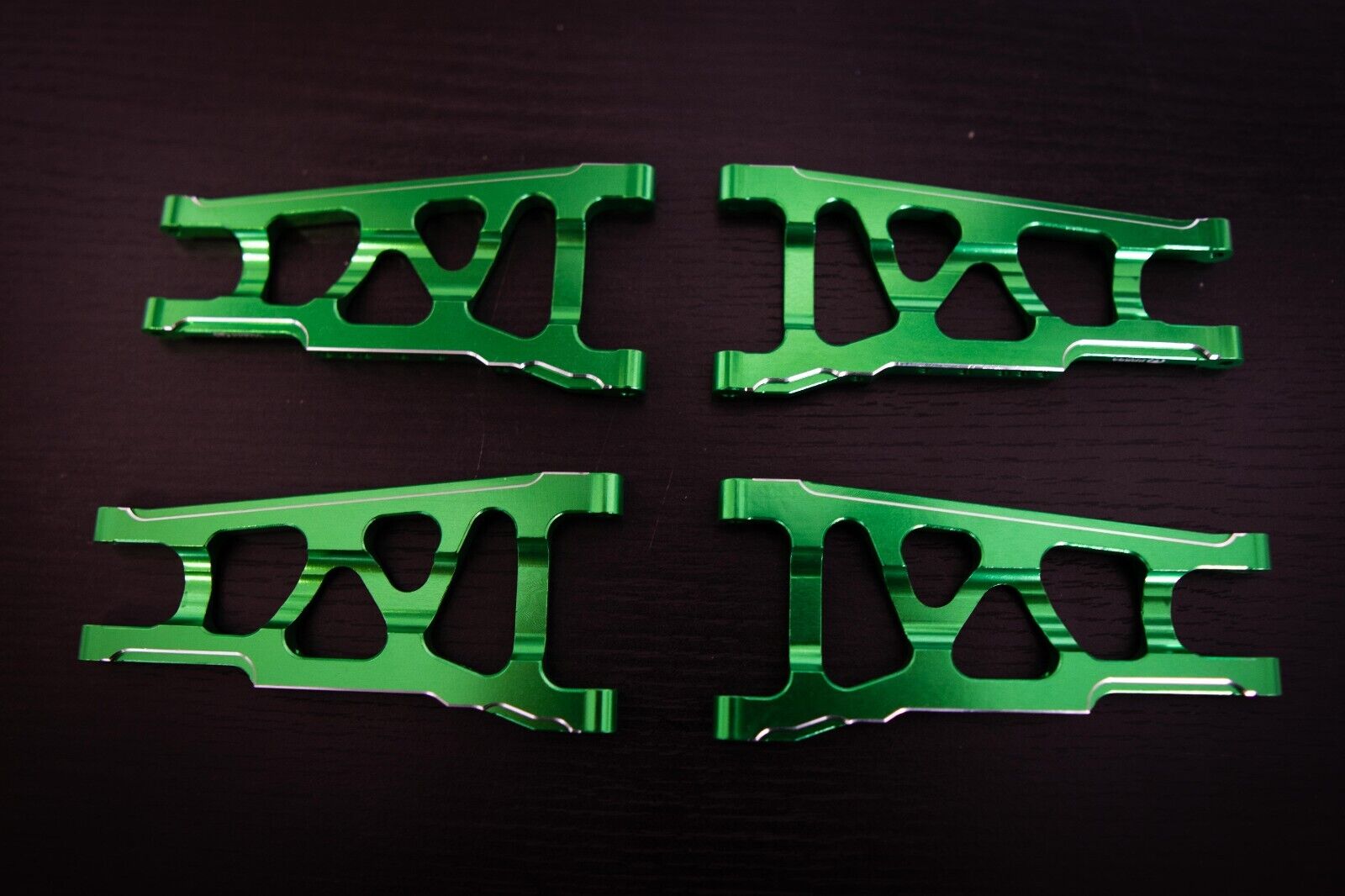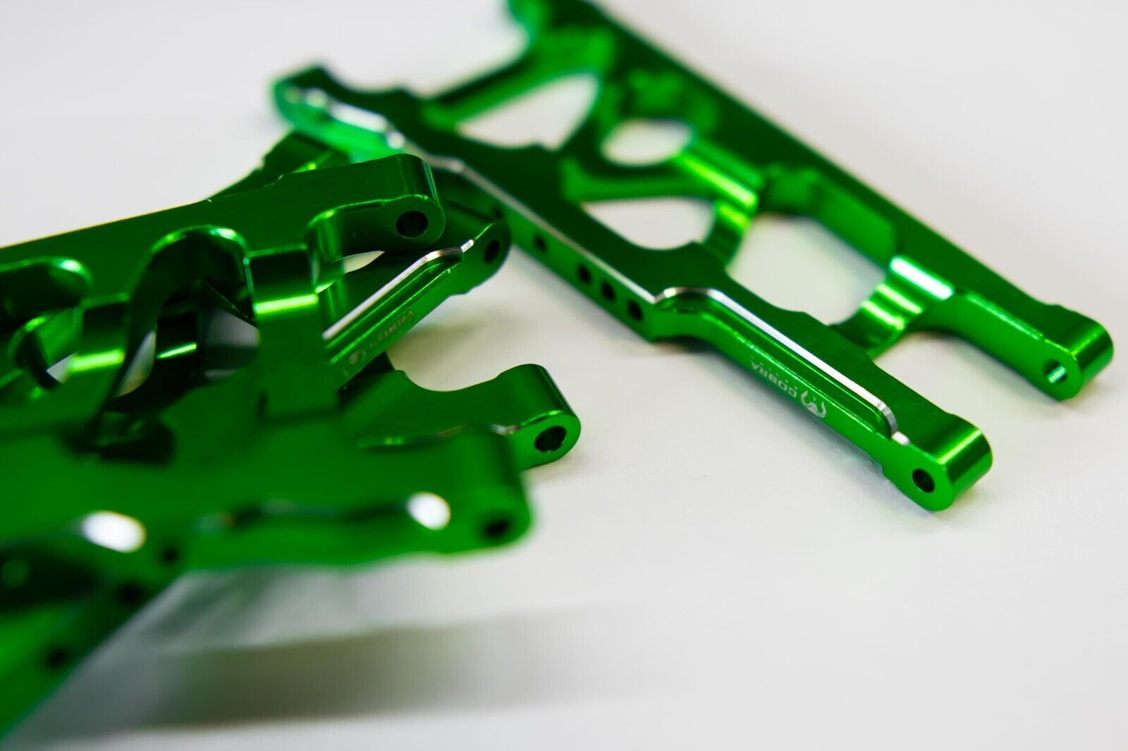 Give your Traxxas 4×4 a high-performance upgrade with Cobra Racingโs Aluminum A-Arms, expertly crafted from premium 7075-T6 aluminum in eye-catching racing green with chrome/silver highlights. These A-Arms are engineered for intense RC racing, bashing and anything you can throw it’s way, for enhancing durability and providing optimal stability. Built to withstand rugged conditions, Cobra Racing A-Arms deliver the support and control you need for challenging terrains while giving your model a sleek, custom look.