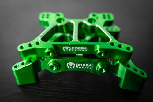 Why Upgrade to Cobra Racing’s Green Aluminum Shock Towers?