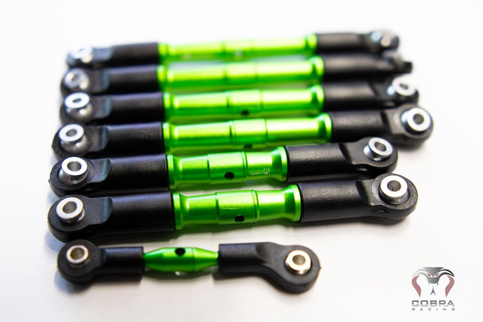 Upgrade your Traxxas Slash, Rustler, Stampede 4×4 (and more – see compatibility list below) with our premium LCG GREEN Aluminum Turnbuckles by Cobra Racing. This full set of tie rods is specifically designed for the 4WD 4×4 model, offering enhanced durability, precision, and performance. Crafted from high-quality aluminum, these turnbuckles are the perfect upgrade for serious RC enthusiasts.